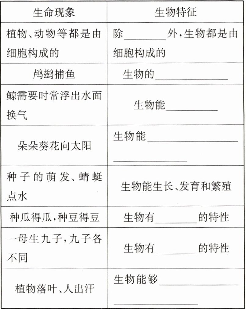 |植物、动物等都是由细胞构成的|除____外,生物都是由细胞构成的|