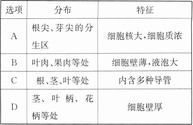 7. 某兴趣小组同学观察植物组织时,完成了以下记录表,其中属于薄壁组织的是( )