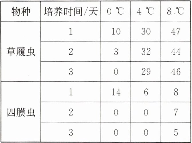 ②部分同学认为上述方法比较费时,进一步了解后发现,草履虫与四膜虫对温度的敏感性不同,如表所示。
