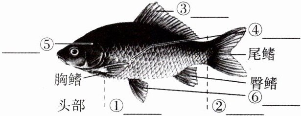 1. 躯干部 尾部 背鳍 侧线 鳃盖 腹鳍 2. 一是能靠游动来获取食物和躲避敌害;二是能通过鳃在水中呼吸。3. 鱼的外形大多呈流线型,这样的体形有利于减小鱼在水中游动时遇到的阻力。4. 鱼的主要特征:生活在水中;体表常有鳞片覆盖;用鳃呼吸;通过尾部和躯干部的摆动以及鳍的协调作用游泳。