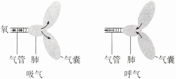 观察鸟呼吸的过程,思考鸟呼吸一次在肺部进行了几次气体交换?这样的呼吸方式有什么意义?气囊内发生气体交换了吗?