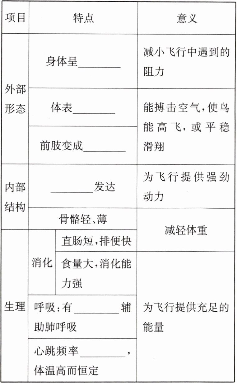 | |呼吸:有______辅助肺呼吸|为飞行提供充足的能量|