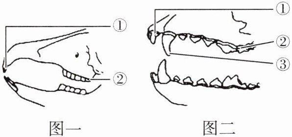 A.图一表示羊的牙齿,图二表示狼的牙齿