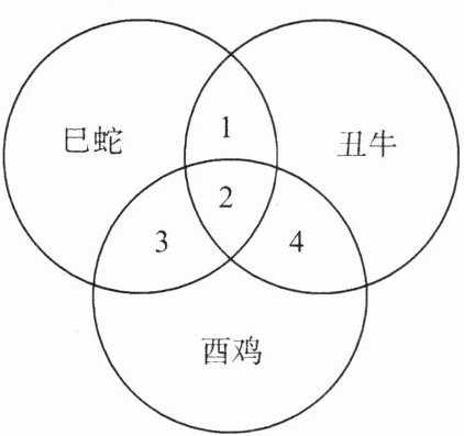 6. 十二生肖是华夏先民图腾崇拜和早期天文学的结晶,让每个人都具有与生俱来的属相,代表着全中国所有人的精神风貌。如图表示丑牛、巳蛇、酉鸡的关系图,交叉部分代表这些动物的共同特征,下列表述错误的是( )