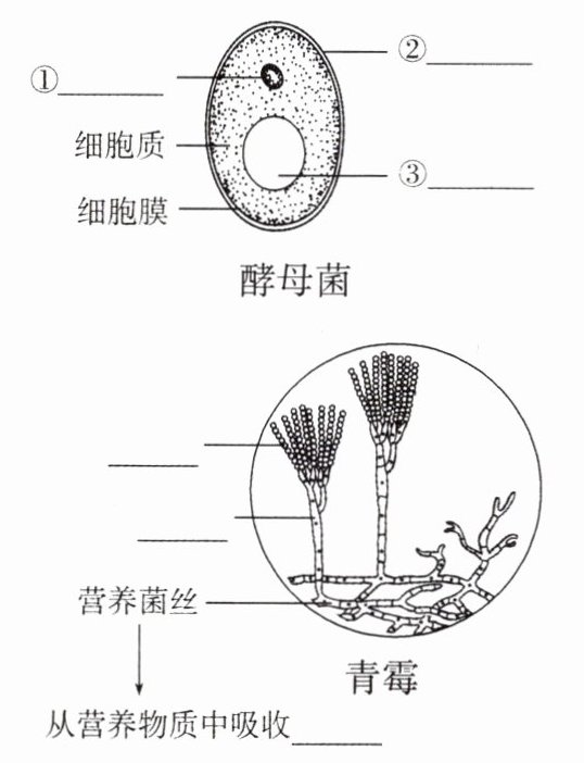 活动 3:完成酵母菌、青霉和蘑菇的结构示意图。