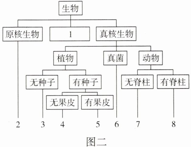 (4)图二中 7 与图一中对应的生物,其体表具有____,可以起保护和支持作用,并能防止水分蒸发。