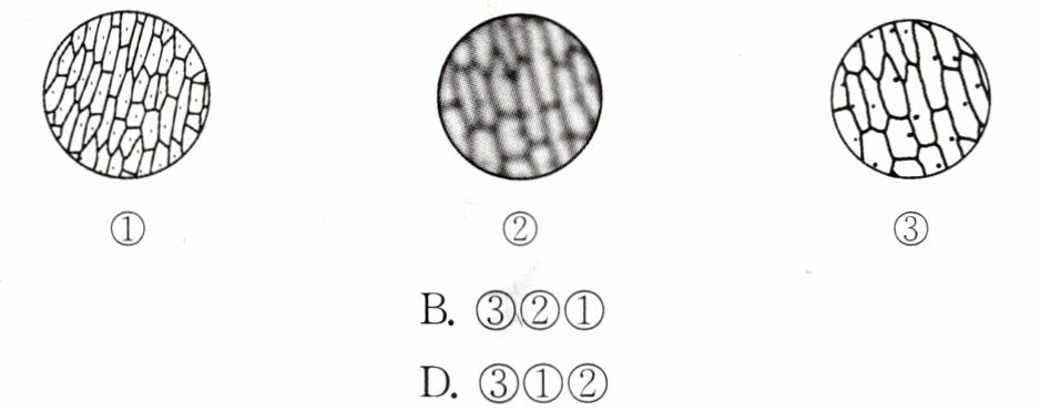 14. 某同学利用显微镜观察切片时,从低倍镜换到高倍镜依次观察到的物像是( )