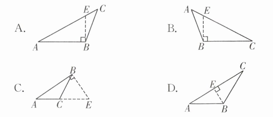 例4 在△ABC 中,作 AC 边上的高 BE,下列图形中正确的是 (