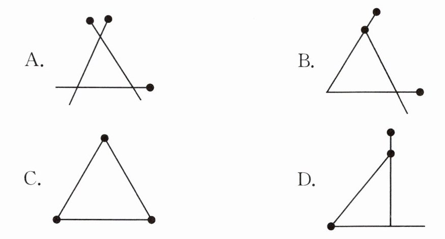例1 下面是用三根火柴组成的图形,其中符合三角形概念的是 (
