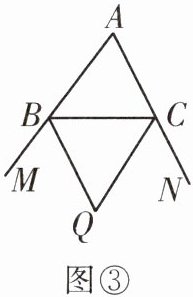 (3) 如图③,$\triangle ABC$的外角$\angle CBM$与$\angle BCN$的平分线交于点$Q$.请写出$\angle Q$与$\angle A$之间的数量关系,并说明理由.