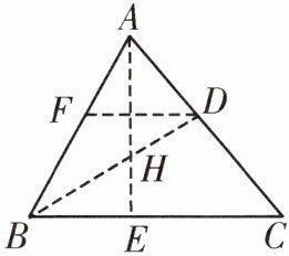 (2)∠DBF = ∠BDF. 理由:如图,设点A的对应点为点P,因为过点D折叠△ABC,使点A落在折痕AE上,得到折痕DF,所以DF垂直平分AP. 因为点P在AE上,所以DF⊥AE. 由(1)得BC⊥AE,所以DF//BC. 所以∠BDF = ∠CBD. 又∠DBF = ∠CBD,所以∠DBF = ∠BDF.