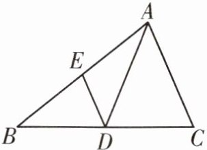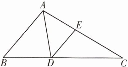 例3 如图所示,AD 为△ABC 的角平分线,DE//AB 交 AC 于点 E,若∠BAC = 100°,则∠ADE =