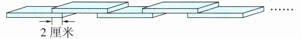 3. 小明正在帮助爸爸进行家庭装修。他们需要把一些木板按照下面的规律粘在一起,以覆盖一个长条形的区域。每块木板长9厘米,把9块这样的木板粘在一起,长多少厘米?(重叠部分的长度均为2厘米)