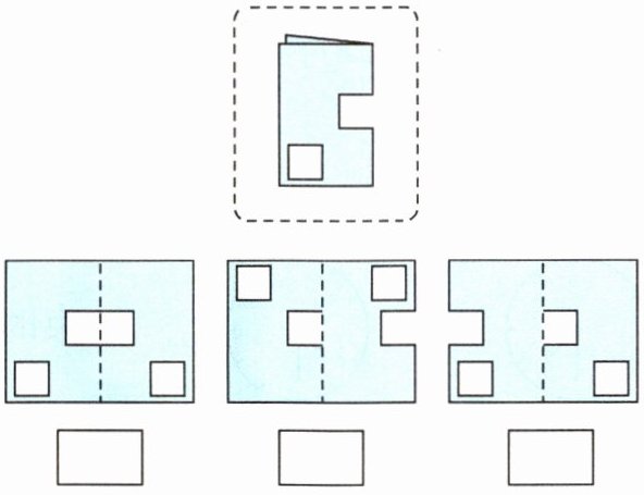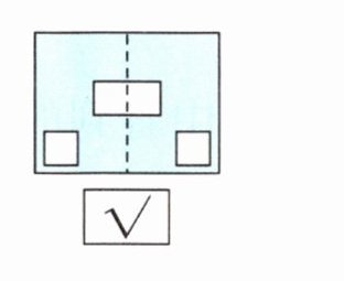 例1 在对折好的纸上剪2个□,打开后会是哪一个?选一选,在□里画“√”。