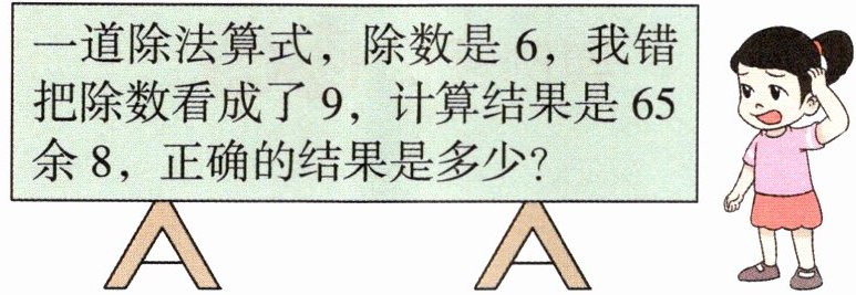2. 丽丽在做一道除法算式时,把被除数 287 错看成了 27,计算结果是 6 余 3,正确的结果是多少?