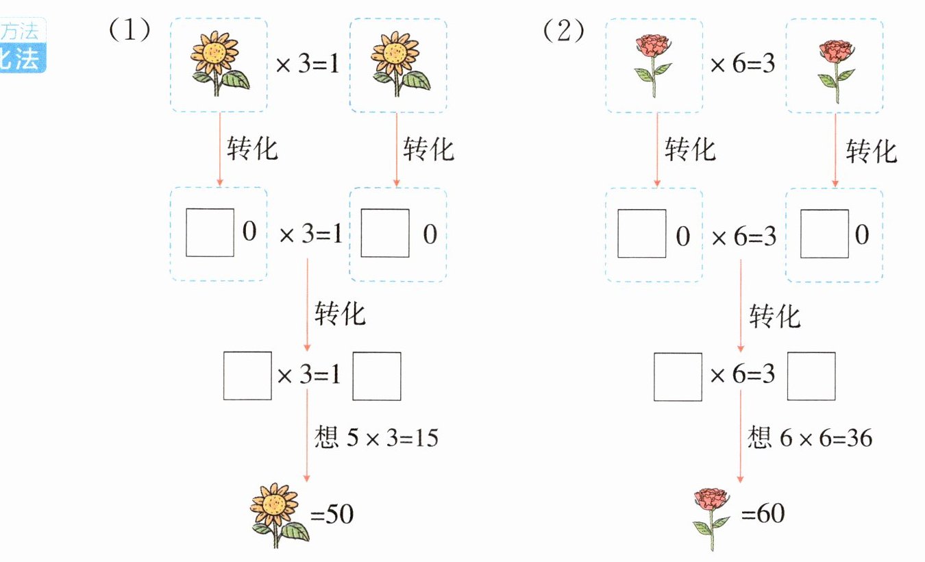 猜一猜,下面的花朵分别等于多少?(相同的花朵代表相同的整十数)
