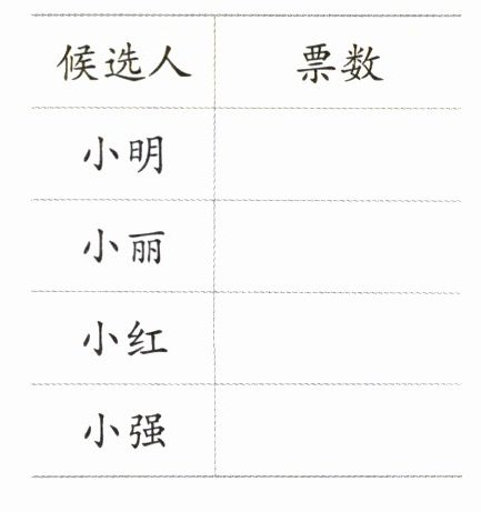1. 三年级二班正在竞选班长,下面是4名候选人的得票情况。