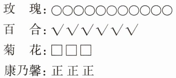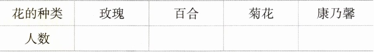 1. 下图是三年级二班同学最喜欢的花的种类调查结果。