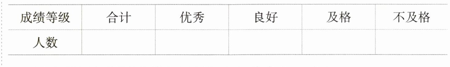 (3)这次语文测试中,90分及以上为优秀,70~89分为良好,60~69分为及格,60分以下为不及格,据此完成下表。