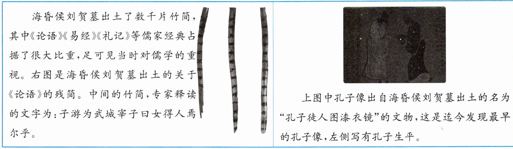 (3)史实:儒家思想已成为国家的重要思想文化。原因:汉武帝接受董仲舒的建议,把儒家学说立为正统思想。价值:丰富了史事记述;提供了可信的史料。