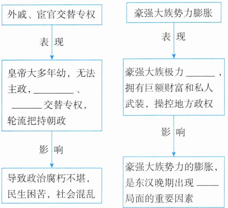 | 外戚、宦官交替专权 | 豪强大族势力膨胀 | |