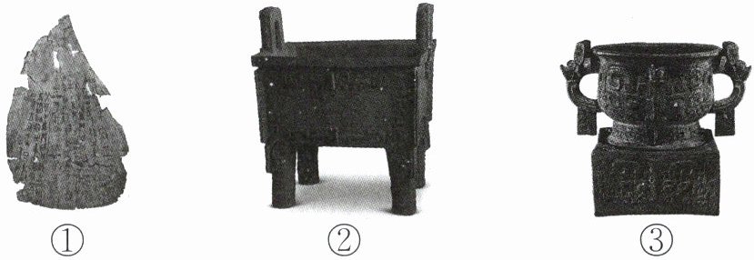 (2)选择①:殷墟出土的甲骨卜辞反映了商朝的政治、经济情况,对研究商朝的历史有重要价值;甲骨文是中国已发现的古代文字中年代最早、体系较为完整的成熟文字,对汉字的形成与发展有深远的影响。选择②:司母戊鼎是商朝青铜器代表,是世界上出土的最重的青铜器之一。