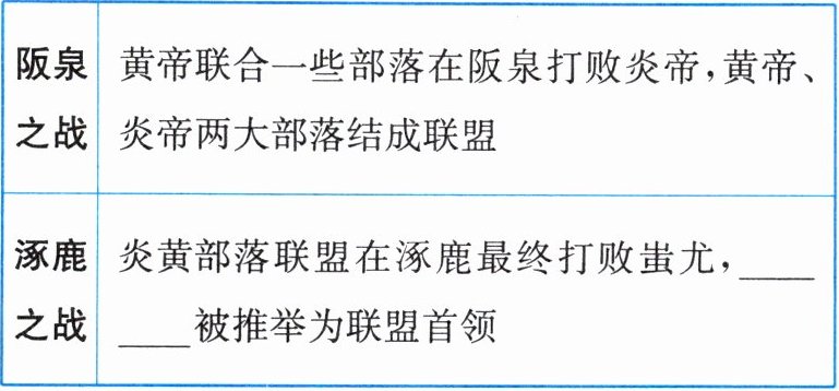 (1) 背景:五六千年前,中国进入______联盟时期。相传,当时黄河流域活动着炎帝、黄帝、蚩尤等几个较大的部落。