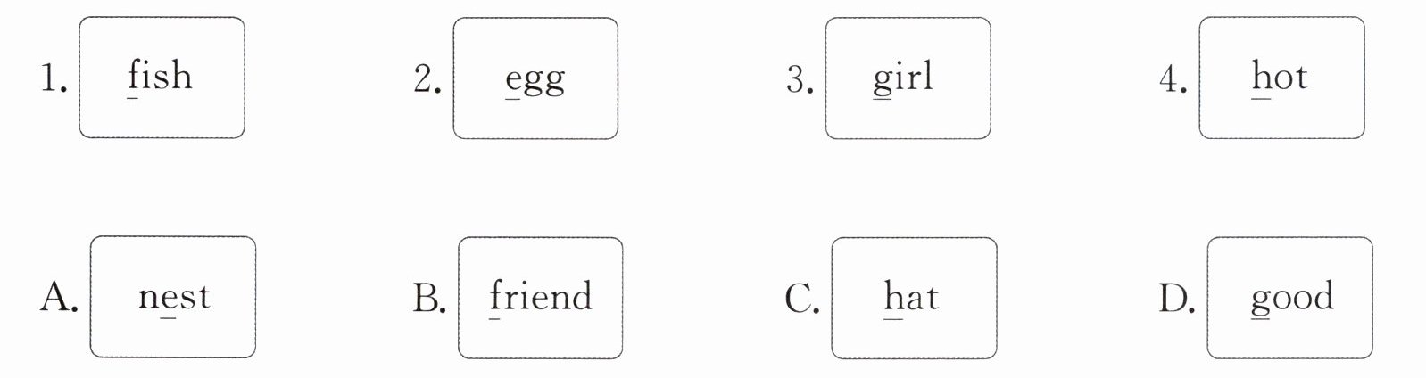 ) A. my B. pig C. like D. look任务(二) 请选出与下列图片相符的单词并写在四线格上。