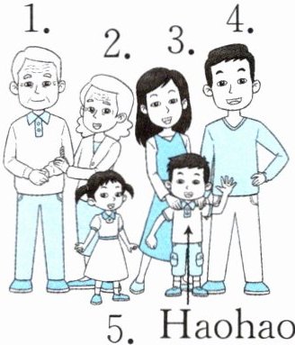 任务(一) 请你根据图片帮助昊昊介绍一下他的家人。选词填空(填序号)。
