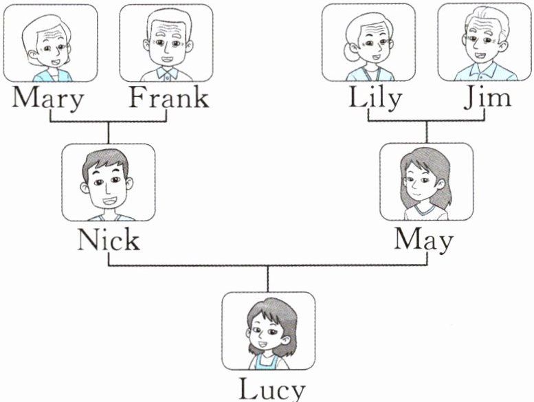 一、看一看 Lucy 的家庭树,判断下列句子是(Y)否(N)正确。