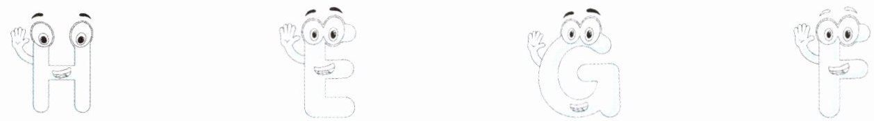 四、仔细观察下列图形,看看它们分别表示什么字母,并按字母表的顺序写出它们的大小写形式。
