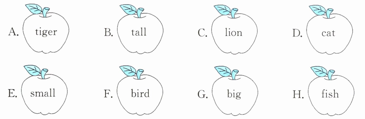 一、将下列单词归类(填序号)。