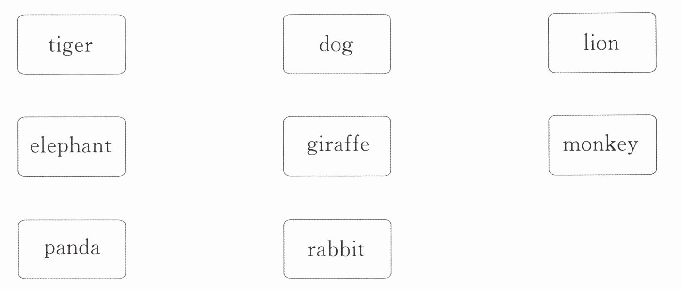 1. (giraffe) 2. (cats) 3. (cute) 4. (red)5. (tall) 6. (monkeys)