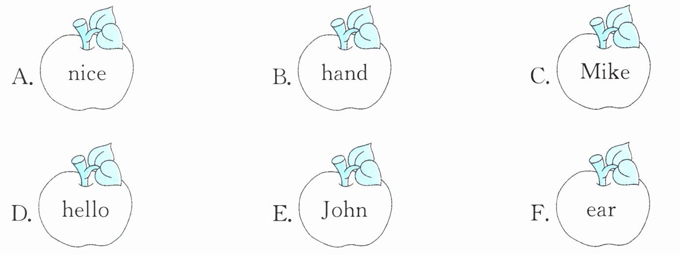 一、听录音,将你听到的单词放进方框里(填序号)。
