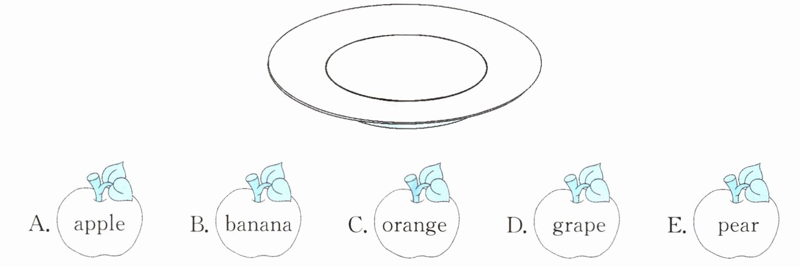 一、听录音,将你听到的单词放到盘子里(填序号)。