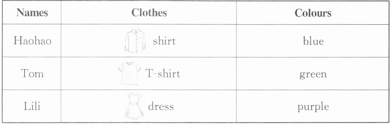 )3. Lili's dress is brown.任务(二) 从下列选项中选择恰当的一项描述同学们的衣服: