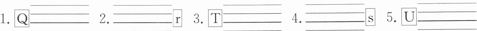 四、字母卡的部分字母模糊了。请根据露出的字母将所缺的大写字母或小写字母写在四线格上。