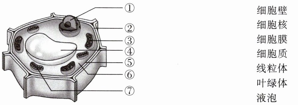 ①—细胞核 ②—细胞壁 ③—叶绿体 ④—液泡 ⑤—细胞膜 ⑥—细胞质 ⑦—线粒体