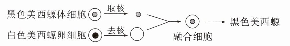 5. 将黑色美西螈体细胞的细胞核移植到白色美西螈的去核卵细胞中,形成融合细胞。在适宜的环境中,融合细胞发育成黑色美西螈。这说明控制美西螈皮肤颜色遗传的是(