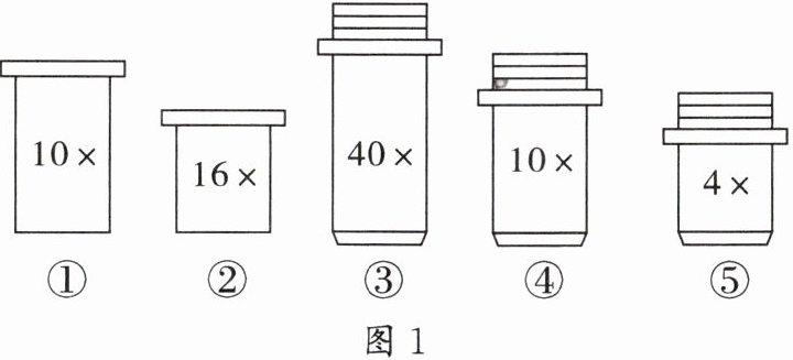 (2)图1中①②无螺纹,是目镜,③④⑤有螺纹,是物镜。要想在最大范围内观察到草履虫及它们的运动轨迹,需要最小的放大倍数,即选用图1中的①和⑤。
