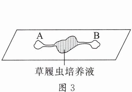 (5)小明进行了探究草履虫趋性的实验后,发现草履虫会趋向牛肉汁、蔗糖等有利刺激,躲避食盐、冰块等不利刺激。现有冰块和牛肉汁两种物质,若想让草履虫从图 3 所示培养液液滴中移向 A 处,可以采取的操作是