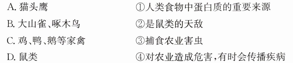 阅读教科书第95页,将下列动物与人类生活的关系连线。