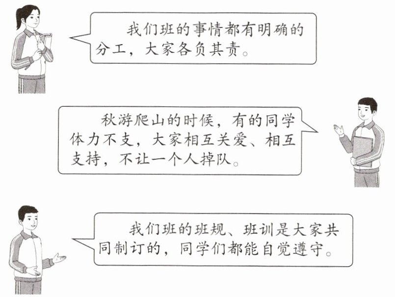 (2)议一议:假如你参与了你所在班级的班规、班训的制定,你会遵守吗?为什么?
