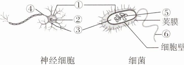 6. 下图分别为人的神经细胞和细菌的结构模式图,请据图回答下列问题。