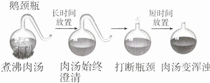12. (内蒙古赤峰)科学家巴斯德通过下页左上图所示的实验,证明了细菌是如何产生的。下列对该实验的分析,正确的是(