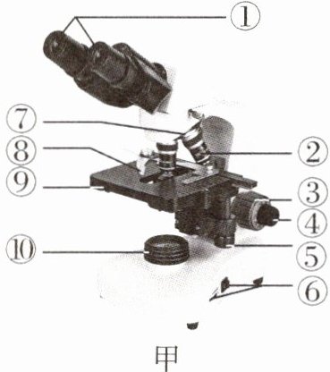 4.显微镜是生物学实验中常用的仪器,正确使用显微镜能帮助我们更好地认识微观世界。下图甲所示是双目显微镜的基本结构,图乙所示是显微镜的目镜和物镜,请据图回答下列问题。