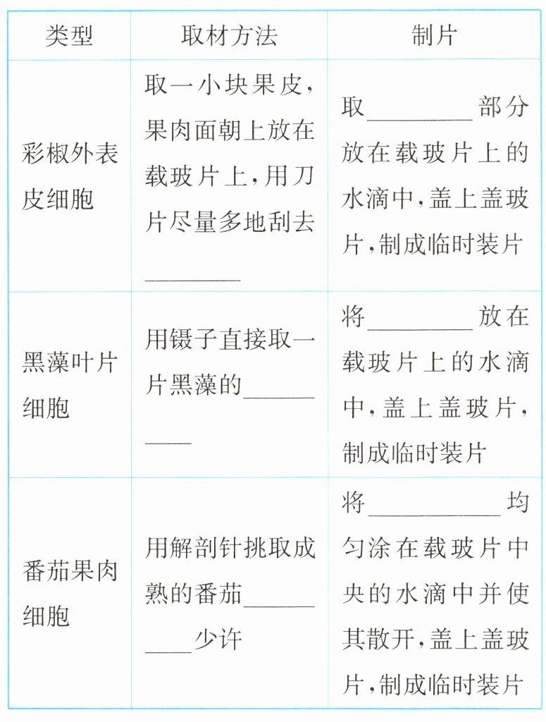 (1) 制作洋葱鳞片叶内表皮细胞临时装片