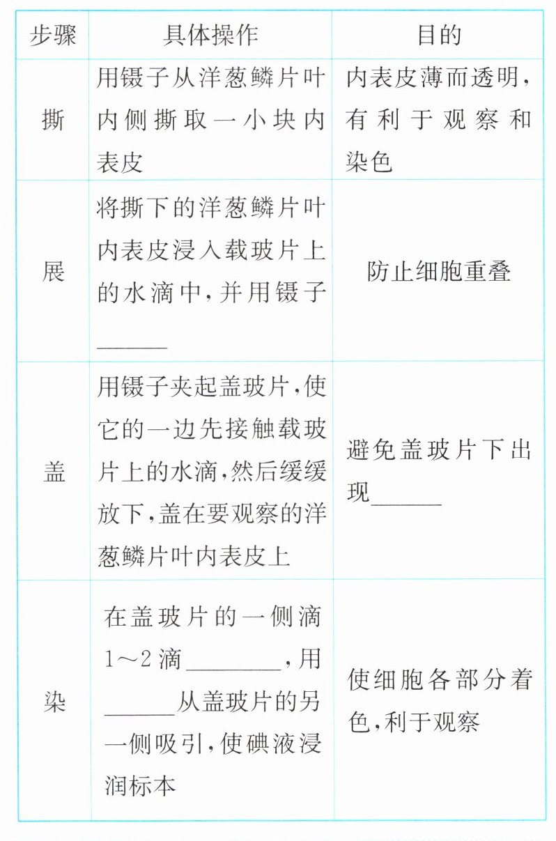 (1)滴 展 染 纱布 清水 展平 气泡 碘液 吸水纸