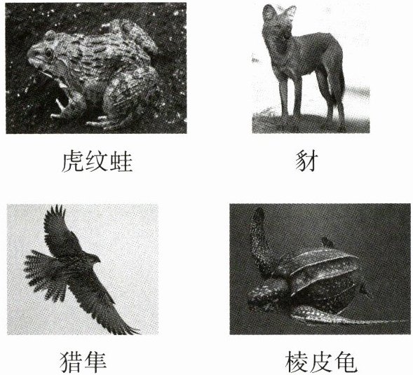 (6)某同学对上述题目中出现的动物进行分类,把虎纹蛙、棱皮龟归为一类,其他动物归为另一类,依据是