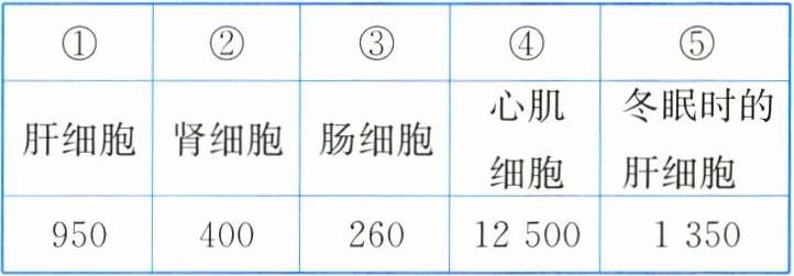13. 下表所示是某动物部分组织细胞中的线粒体数量(单位:个),推测各组织细胞的代谢活动由强到弱依次是(